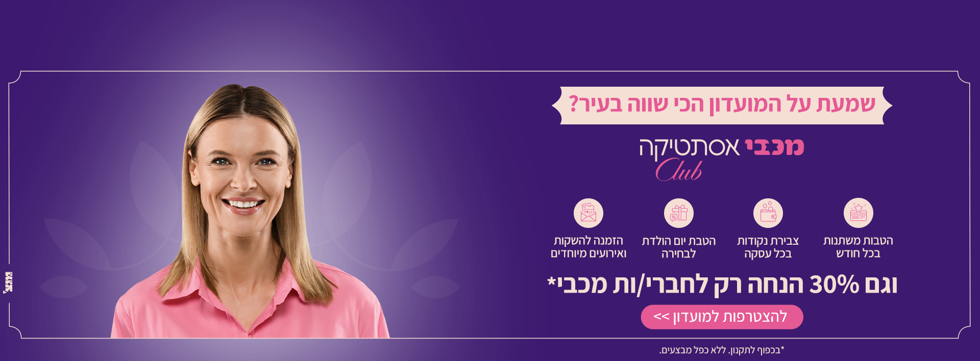 'מכבי אסתטיקה' מציעה מגוון טיפולים, המותאמים בדיוק לצרכים המשתנים של גופך, בכל שלב.